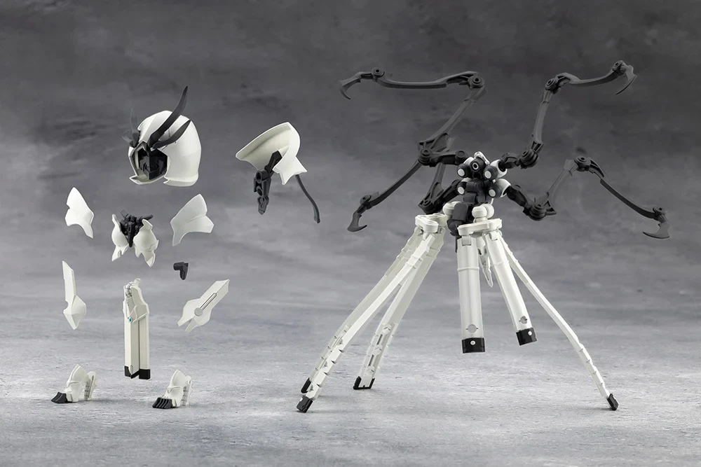 The four extended artificial limbs on the back are movable, and can be extended and retracted. The base is a 4mm ball joint, making it possible to attach female Megalomaria arms to create a six-armed character. The skirt-like pieces of armor are connected with ball joints and have multiple points of articulation, allowing for a wide range of dynamic poses. The extended artificial arms can also be removed and used as a mage's familiar.